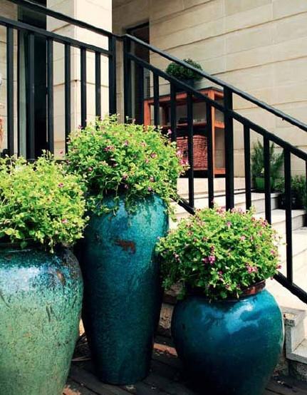 戶外的綠色植物搭配具有造型感的陶瓷花器,植物的錯(cuò)落層次營(yíng)造出庭院的氛圍來(lái)。