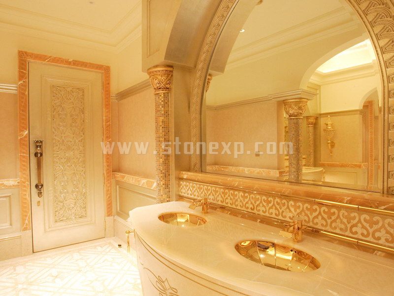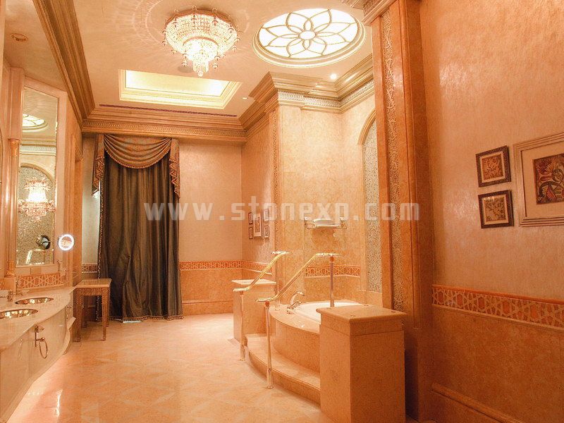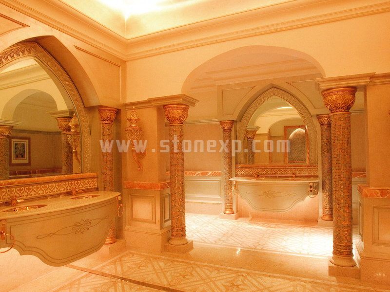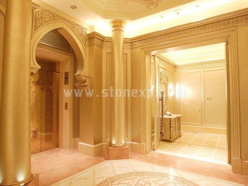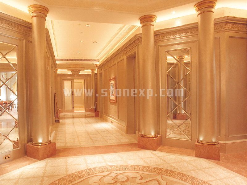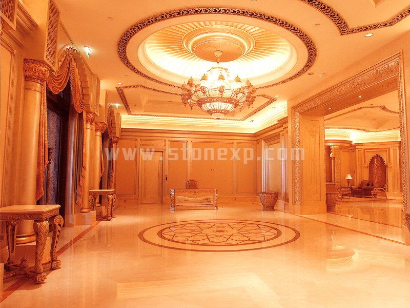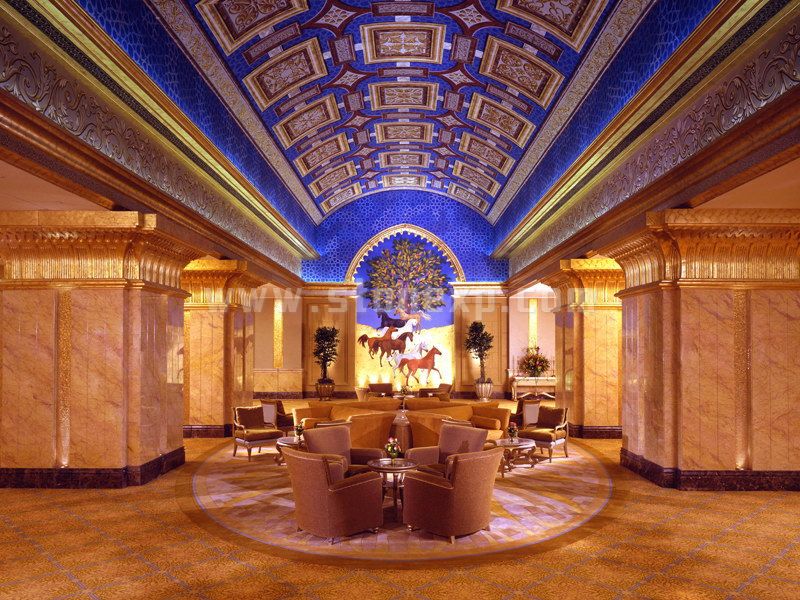 阿聯(lián)酋皇宮酒店,被譽(yù)為世界最豪華、八星級(jí)的酒店,香港環(huán)球石材集團(tuán)在與意大利等國(guó)際公司激烈的競(jìng)逐中,憑著突出的資源優(yōu)勢(shì)、技術(shù)優(yōu)勢(shì)、統(tǒng)籌大型與超大型工程石材的豐富經(jīng)驗(yàn)而中標(biāo),成為唯一入圍的中國(guó)公司。整個(gè)工程耗資逾30億美元,耗費(fèi)近150000立方米的進(jìn)口大理石,而酒店的核心部分,包括總統(tǒng)套房、部長(zhǎng)套房、總統(tǒng)及部長(zhǎng)Lobby、VIP入口等部位的裝飾石材均由香港環(huán)球石材提供。 |