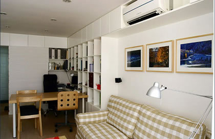 可在客廳角落以簡單的桌椅營建一個工作空間,再以屏風來遮擋桌椅。
