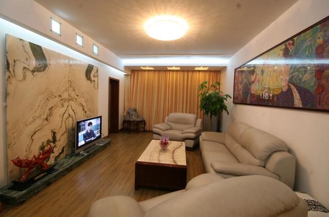 非常幸運(yùn)的是,在開工后不久,我們?nèi)ミx影視墻背景的石材時(shí),“意外”地發(fā)現(xiàn)了兩塊隱約有觀音菩薩象的大理石。簡單調(diào)整了下電視墻的尺寸,這塊天然的富有“仙”氣的大理石,就那么“自然”地走進(jìn)我的設(shè)計(jì)中。在配置布藝和飾品的時(shí)候,周老師夫婦的支持,讓這個(gè)設(shè)計(jì)得到了進(jìn)一步的完善。