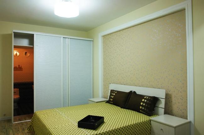 還值得一提的是主臥室的設(shè)計(jì)。暗金色的基調(diào),讓整個(gè)空間華而不浮。衣柜后隱藏的“衛(wèi)生間”因鑲貼的都市建筑題材的瓷磚,讓整個(gè)設(shè)計(jì)平添了幾分都市氣息。