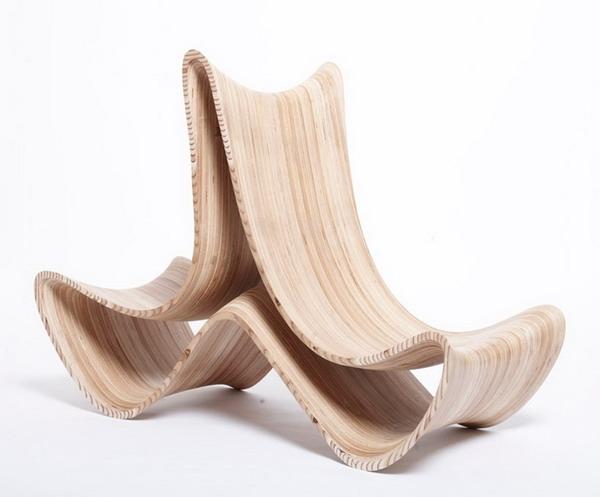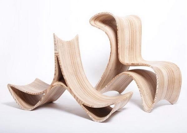 Triwing座椅給人第一印象就像高數(shù)曲線一樣蜿蜒優(yōu)雅,層疊的木紋表面讓它看起來更是如行云流水一般,最巧妙的是它不但曲線優(yōu)美,還能變身:首先,它有內(nèi)外兩層,將內(nèi)部那一層抽出來,便成了兩張獨(dú)立的座椅,而且,這曲線造型原來是另有奧妙的,平放的時候是一張單人座椅,把它翻過來換個角度,便成了可以背靠背坐著的二人座椅。