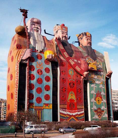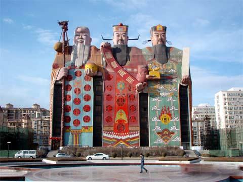 傳說此地是昔日皇帝東巡時的御駕行宮,為創(chuàng)造“目前獨一無二的”人文景致,“發(fā)思古之幽情”,故建福祿壽三星像。
