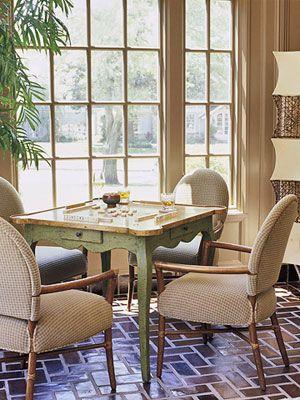 來客人時(shí),家里的小餐桌最好也能充當(dāng)娛樂桌使用。如果你的空間只夠擺放一張很小的餐桌,那么一定要選擇一張很有特色的,或者樣式奇特,或者顏色醒目突出。[page]