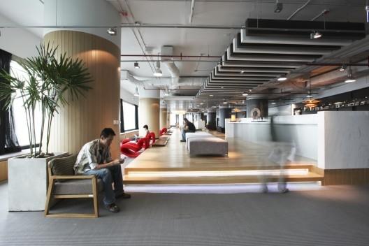 這是Hassell建筑事務(wù)所為泰國(guó)最大的電信供應(yīng)商之一dtac設(shè)計(jì)的辦公空間,它能容納3500名員工,占地62000平方米,共有超過(guò)20層。Dtac公司的理念是在玩中學(xué),設(shè)計(jì)很好地將這一精神融入進(jìn)設(shè)計(jì),挑戰(zhàn)傳統(tǒng)的辦公空間概念。設(shè)計(jì)在于將這一理念傳達(dá)給每個(gè)員工和到訪者。