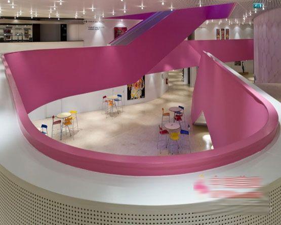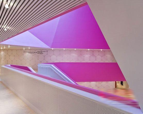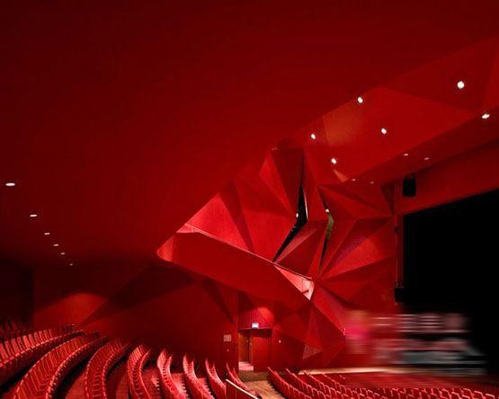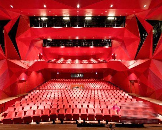 劇院的總體設計靈感來自萬花筒形式,而建筑的顏色則源于萊利斯塔德的天空相片。室內的色彩設計靈感來源于人們拍攝下來的日落圖景,而藍色則源于晴朗天空的顏色。由于萬花筒般的鉆石結構,不同側面的燈光顏色不斷變化,煞是好看!