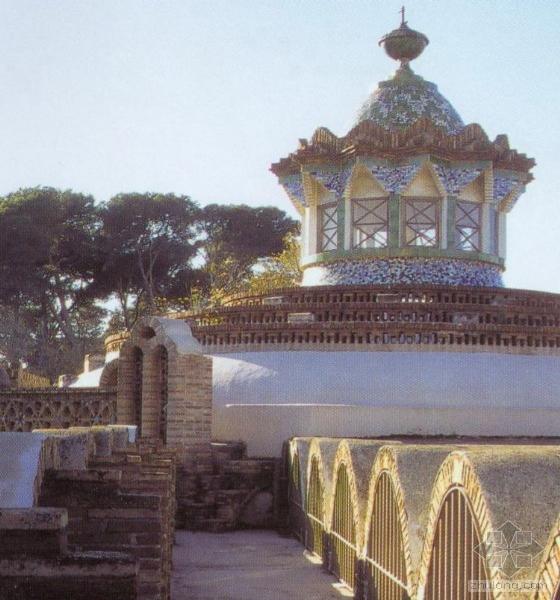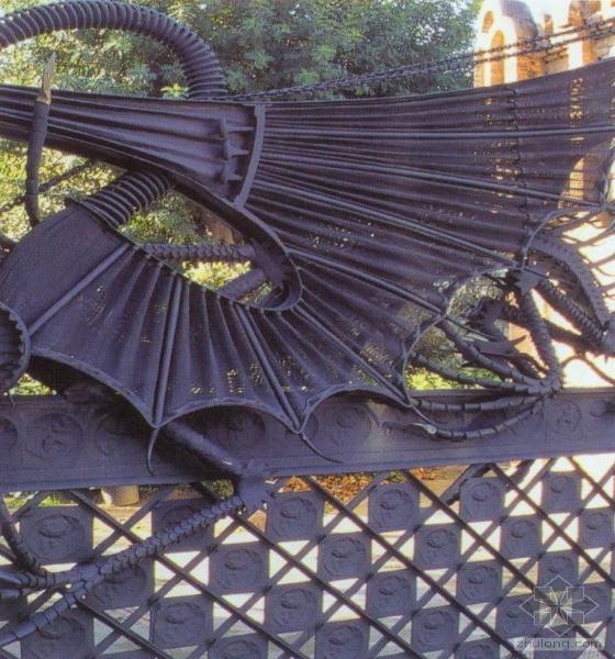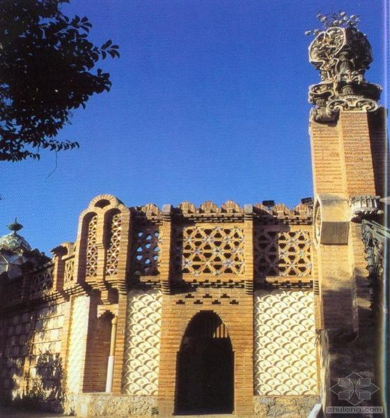 尤塞比·居埃爾是高迪的主要資助人和導(dǎo)師。受尤塞比·居埃爾的委托,高迪著手修建位于Les Corts和Sarria兩個(gè)街區(qū)之間的住宅。除了修復(fù)某些已經(jīng)屹立在那里的建筑外,高迪還建造了其他模型和附加元素,并設(shè)計(jì)了多種裝飾性設(shè)施。這個(gè)巨大的場(chǎng)所有兩個(gè)入口,一個(gè)為行人專用,一個(gè)為馬車專用。這兩個(gè)入口側(cè)面有兩個(gè)亭子,分別為門房和馬廄,并連接到另一個(gè)區(qū)域,這個(gè)區(qū)域被用作騎馬的環(huán)形跑道。門房設(shè)計(jì)為一個(gè)亭子,并分為三個(gè)部分,分別為主體、八角形區(qū)域以及兩個(gè)半分離的隔室,其中隔室為長(zhǎng)方形。馬廄的區(qū)域設(shè)計(jì)為一個(gè)長(zhǎng)方形的獨(dú)立空間,外帶拋物形的拱門和拱頂。由于使用了梯形孔,這個(gè)空間可以接收到充足的自然光,而且由于白墻的反射,光照得以加強(qiáng)。在門房和馬廄之間是一個(gè)很大的鍛造鐵門,鐵門上有一個(gè)同樣材料的雕塑龍。這是1885年在高迪設(shè)計(jì)的基礎(chǔ)上由Vallet I Pique的工場(chǎng)建造的。