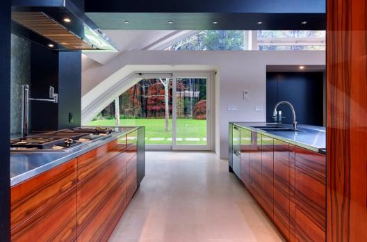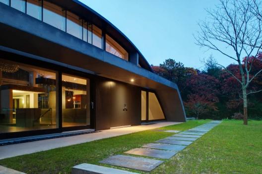 這是一個私人住宅,供一對夫婦和他們的兩只大狗居住。場地位于通向機(jī)場高速路的沿線,緊鄰火車站。設(shè)計師通過利用工業(yè)建筑模式,即一個飛機(jī)庫,來打破場地的限制。另外設(shè)計師對巨大的無柱穹頂很感興趣,它將整個公共空間包裹,有效地利用了室內(nèi)空間。
