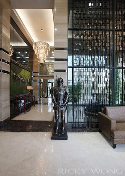 汕頭尚海陽(yáng)光項(xiàng)目整體設(shè)計(jì)上用到比較多的鐵藝,去打造出類似屏風(fēng)和窗花的造型,兩個(gè)鐵甲武士和墻上的馬術(shù)掛畫(huà),是為了能夠融合一種貴族的精神文化,也就是馬術(shù)精神中所強(qiáng)調(diào)的睿智、堅(jiān)持與超越。
