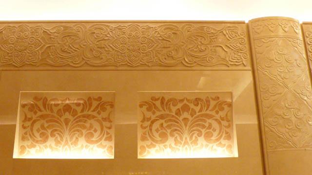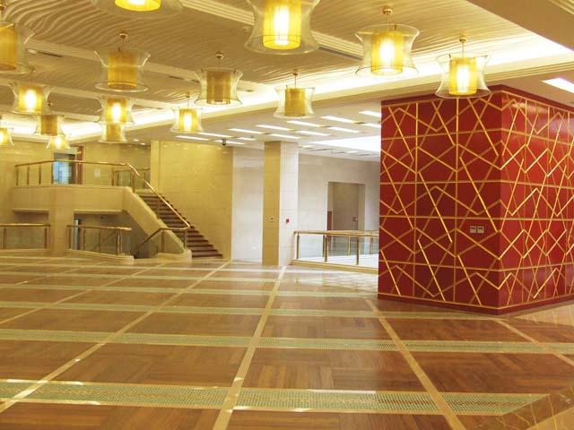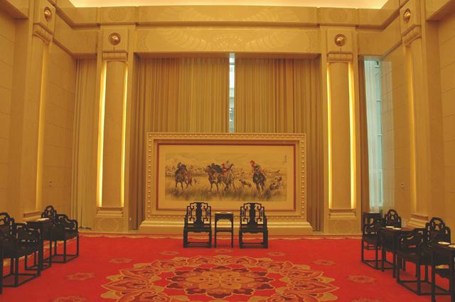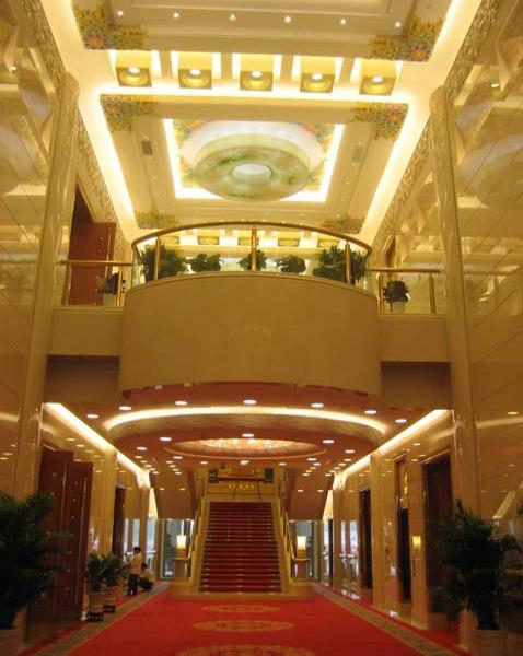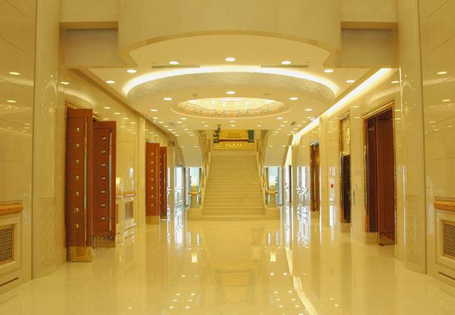 首都國際機(jī)場專機(jī)樓和公務(wù)樓的主要功能是針對世界各國的元首、企業(yè)集團(tuán)的首腦而專門設(shè)置的專機(jī)接待樓??梢哉f是中國的國門,是給世界各國首腦第一印象的空間,是一個(gè)國家的形象。設(shè)計(jì)中所追求的是中國最精髓的思想和文化內(nèi)涵,最具代表性的形式和色彩,最精美的工藝和藝術(shù)陳設(shè)。在思想和文化上表現(xiàn)出了“有朋自遠(yuǎn)方來不亦樂乎”的好客精神;在形式和色彩上主要以中國古典建筑藝術(shù)造型進(jìn)行提煉和升華;在藝術(shù)品的陳設(shè)上主要以傳統(tǒng)的工藝,來表現(xiàn)中國具有代表性的文化遺產(chǎn)與傳統(tǒng)藝術(shù)。