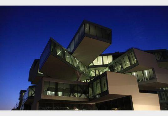 這幢采用懸臂結(jié)構(gòu)的辦公樓位于瑞士的阿爾施維爾,由一些長方形的建筑體組成,被描述為像“俄羅斯方塊游戲”(game of Tetris.)的相互重疊的方塊。[page]