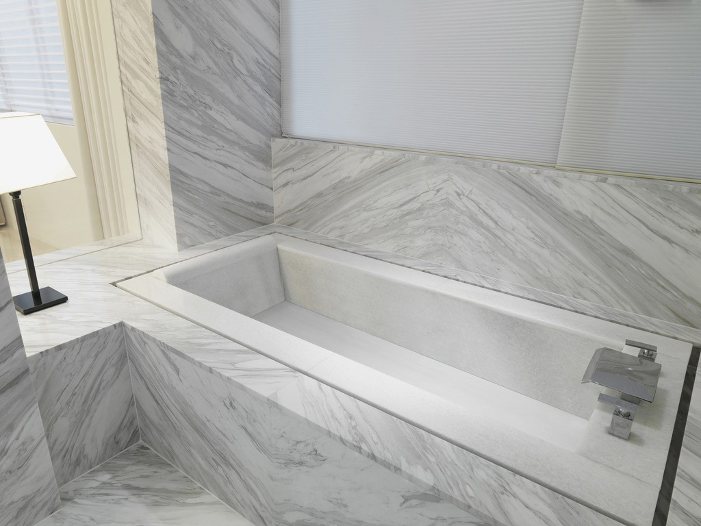 簡單描述:白色浴室--天然石材裝飾清新的浴室設(shè)計(jì)