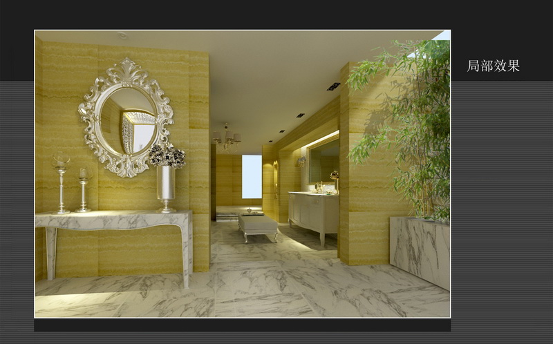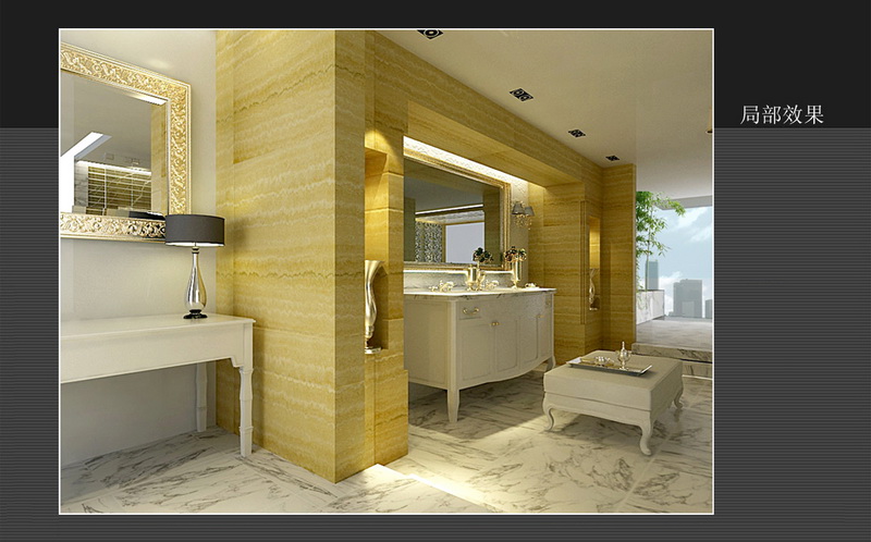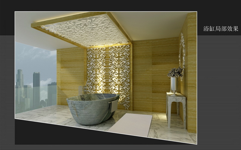 雪白的土耳其白砂石雕花細(xì)膩高雅,層層引出“白”凈的沐浴空間感受。銀白和閃金的配飾添以潤(rùn)色,則不失奢華。 |