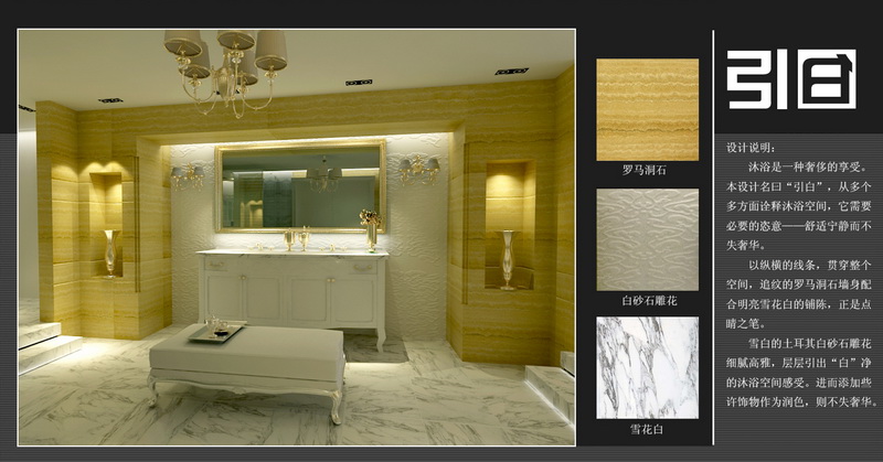本設(shè)計(jì)名曰“引白”,從多方面詮釋沐浴空間的特質(zhì),它需要必要的恣意——舒適寧?kù)o而不失奢華的氛圍。