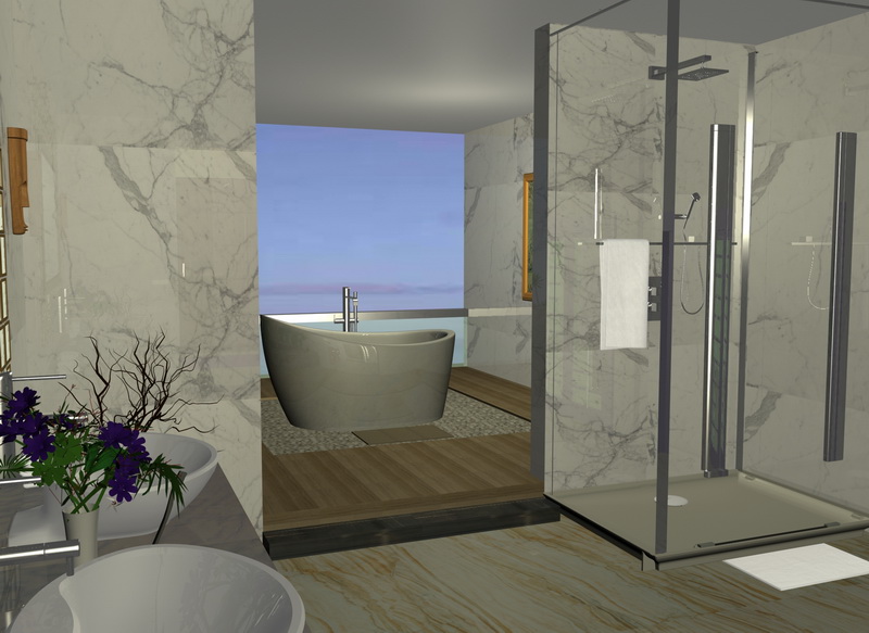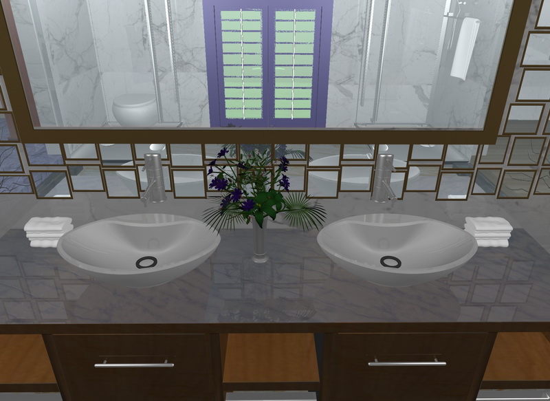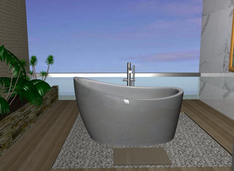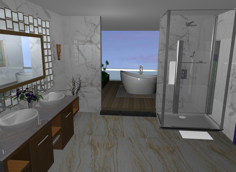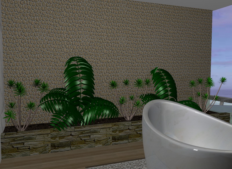 本設(shè)計(jì)所用石材一覽: 洗漱區(qū) 墻身:魚(yú)肚白 地面:夢(mèng)幻天空 臺(tái)面:藍(lán)海 浴缸:流星雨 地面:木紋石 景觀背景墻:米黃特色表面 花池:任意邊角料 門(mén)檻石:黑羅蘭 地面:條紋白玉 梳妝臺(tái):紅木 墻面:索菲特金