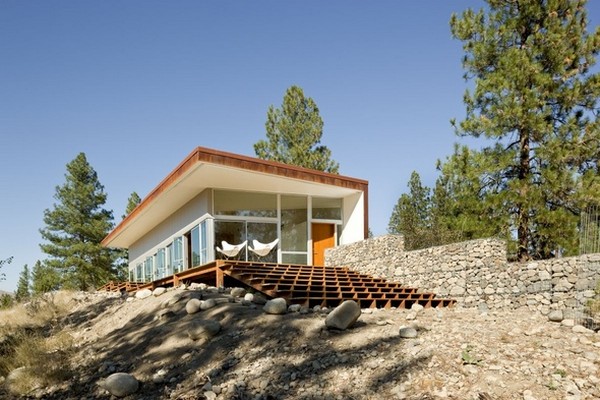 別墅在規(guī)劃中根據(jù)所處的地形地貌,沒有按照一般的做法將整個(gè)場地整平,而是花費(fèi)較大的成本來保留了原有的地形地貌和部分地上的植物,提出了坡地美宅的生活居住概念。