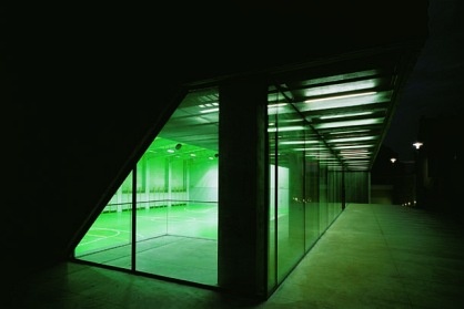 體育會所占地面積3660平方米,建筑面積1108平方米,用籃球場來界定并且增添了一座健身中心和一座桑那屋,存物室也是老學校的擴建部分。