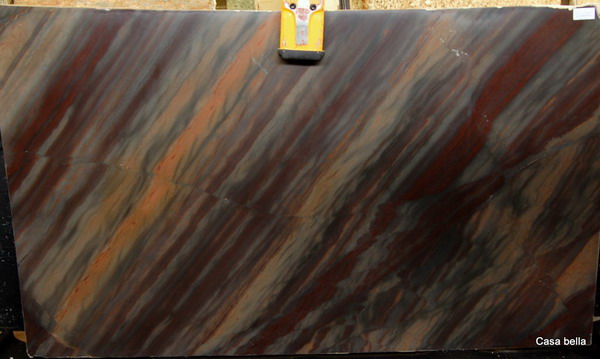 Prominent directional veining in muted shades of warm browns contrasted with cool greens make this an unusual granite.