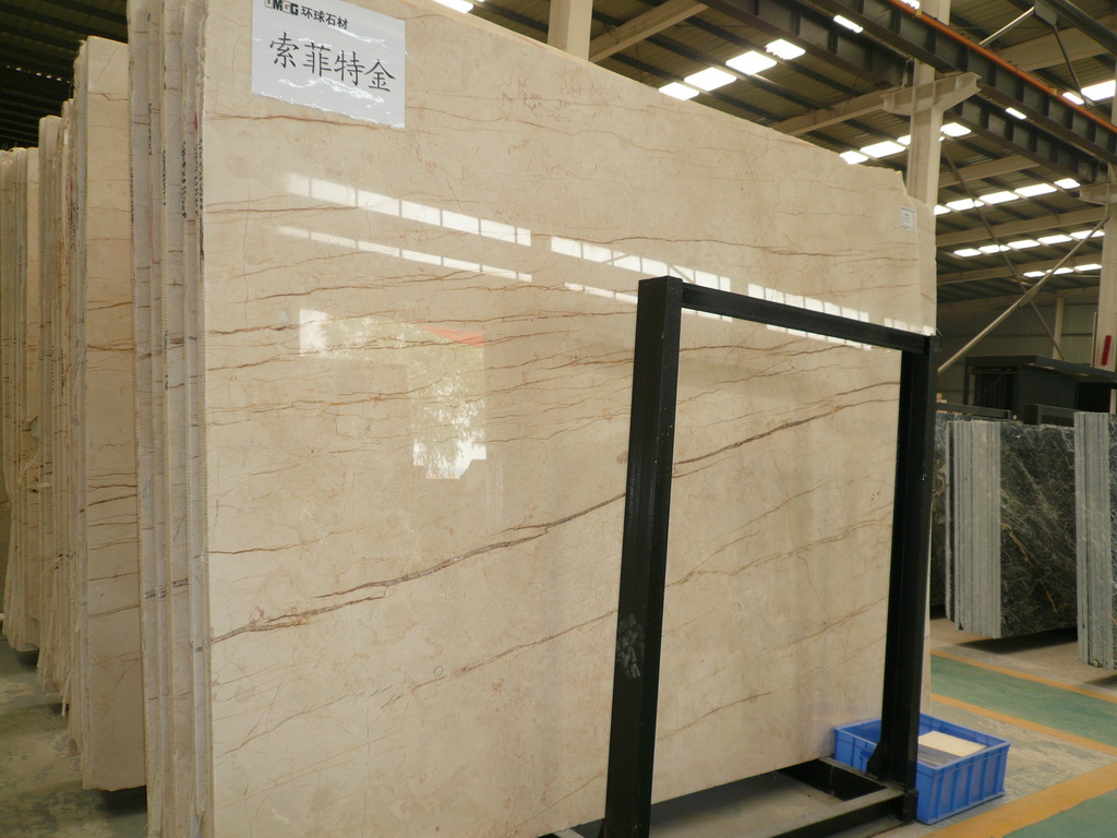 該工程使用石材主要為索菲特金、淺啡網、侏羅紀米黃、東方明珠等,均由環(huán)球石材提供。酒店內部地面、墻面均大面積使用索菲特金和淺啡網,整個色調以米黃色為主,間或穿插著光度頗好的淺咖啡色的淺啡網大理石 ,獨特的紋理色彩,夸張的線條,裝點室內墻面或地面,彰顯了擁有者不凡的品味和藝術修養(yǎng)。