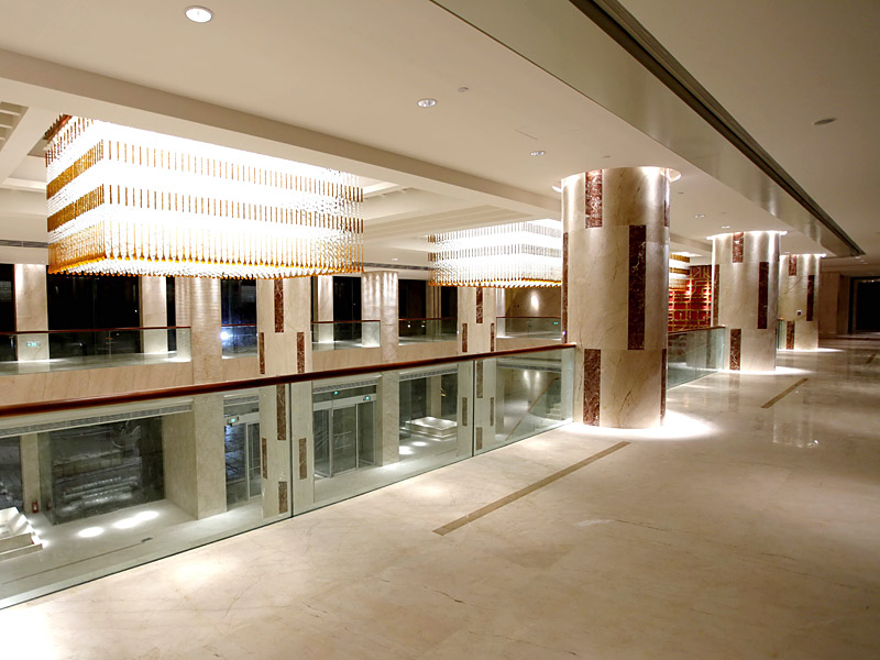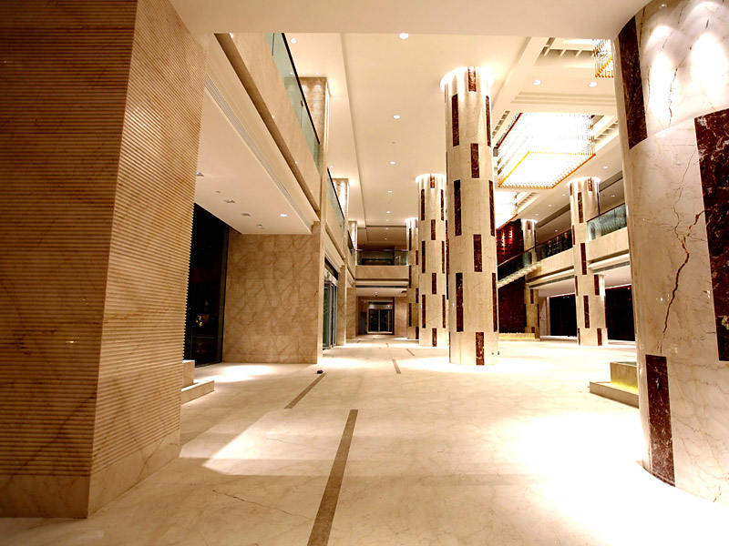 作為世界頂尖酒店,由新加坡威爾遜室內設計機構精心設計,室內深化由上海羅頓室內設計深化設計。整體布局引領時代風格。是合肥最重要的標志性建筑之一。主要用到特色品種侏羅紀米黃、索菲特金、鵝毛金、金香玉、東方明珠、淺啡網等高端石材品種。共計約12000平方。整體風格富麗堂皇。