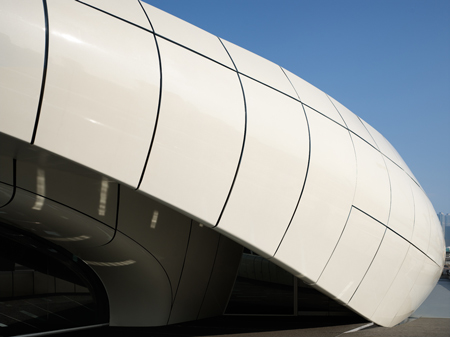 展覽館向公眾開放時間至2008年4月5日。移動藝術(shù)展覽館的設(shè)計靈感來自于香奈爾的標(biāo)志性作品the quilted bag。香奈爾以其永久的高雅、簡潔、精美的風(fēng)格而著稱。這位一致追求復(fù)雜、充滿活力和流動空間的設(shè)計大師扎哈哈迪德,此次通過嚴(yán)格的一體化設(shè)計,將作品融入自然與尖端技術(shù)相結(jié)合的創(chuàng)作設(shè)計上??梢哉f,香奈爾藝術(shù)展覽館是一件藝術(shù)品,匯集了文化的深邃與藝術(shù)的境界。