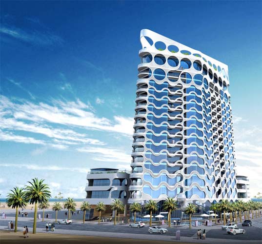 18-層的 façade 是設(shè)計(jì)師 James Law Cybertecture新作品在阿聯(lián)酋的迪拜,建筑的外形受到在玻璃杯中的香檳泡沫滑動(dòng)樣子啟發(fā)。該建筑在迪拜的江邊,全部建筑使用太陽(yáng)能技術(shù)解決能源動(dòng)力問(wèn)題。
