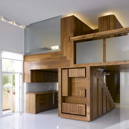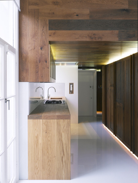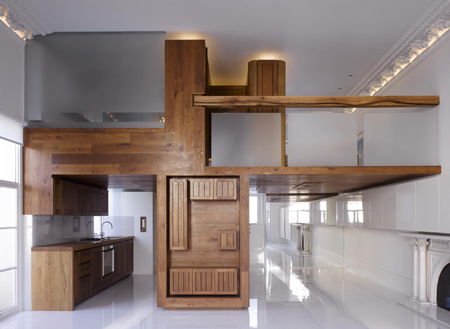 這棟公寓的名為“Queen’s Gate Terrace apartment”,由建筑師 Hamish Herford設(shè)計。室內(nèi)主要由木結(jié)構(gòu)分割為廚房,衛(wèi)生間,閣樓和儲存間。這間公寓看起來絕對是一體化的設(shè)計。
