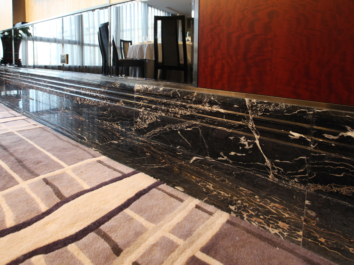 應(yīng)用:黑金花是天然大理石中非常名貴的石材品種之一,主要應(yīng)用于室內(nèi)墻面和地面的裝飾,在室內(nèi)裝修中,還常應(yīng)用于電視機(jī)臺(tái)面、窗臺(tái)、門(mén)套、石柱、壁爐等。一般用于加工成各種形材、板材,作建筑物的墻面、地面、臺(tái)、柱,還常用于紀(jì)念性建筑物如碑、塔、雕像等的材料。黑金花大理石還可以雕刻成工藝美術(shù)品、文具、燈具、器皿等實(shí)用藝術(shù)品。質(zhì)感柔和美觀莊重,格調(diào)高雅,是裝飾豪華建筑的理想材料,也是藝術(shù)雕刻的傳統(tǒng)材料。