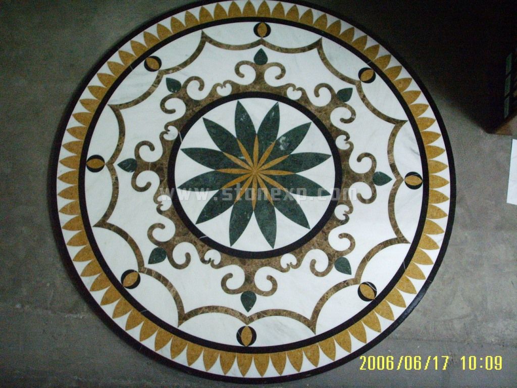 水刀拼花主要是由水刀機(jī)切割出來,其花紋、效果多變,加工技術(shù)高。