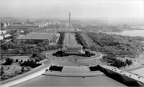 圖2.華盛頓的“國(guó)家大草坪”(The National Mall),是“城市美化運(yùn)動(dòng)”的一部分。它的典型特色是經(jīng)典建筑沿著公園排列。