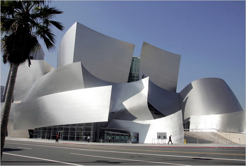“迪斯尼音樂廳”(Walt Disney Concert Hall)完成于6年前,是扭轉(zhuǎn)這種趨勢(shì)最初的認(rèn)真努力。建筑師弗蘭克·蓋里費(fèi)了很大的力氣,使他設(shè)計(jì)的這幢建筑物與圍繞它的城市融合。包住建筑物的反光的不銹鋼帶,沿著格蘭德路,增加了建筑物的吸引力。誘惑路人進(jìn)入“迪斯尼音樂廳”。在正上方,建筑物的表面膨脹與隔壁的“多蘿西·錢德勒帳篷劇場(chǎng)”(Dorothy Chandler Pavilion)回應(yīng),增加了這幢舊的建筑物的魅力。