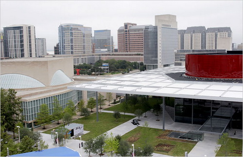 圖8在達(dá)拉斯,由諾曼·福斯特設(shè)計(jì)的歌劇院,右邊是最近開放的“AT&T表演藝術(shù)中心”的一部分。它們都是有活力的美國(guó)建筑運(yùn)動(dòng)的最后的項(xiàng)目。