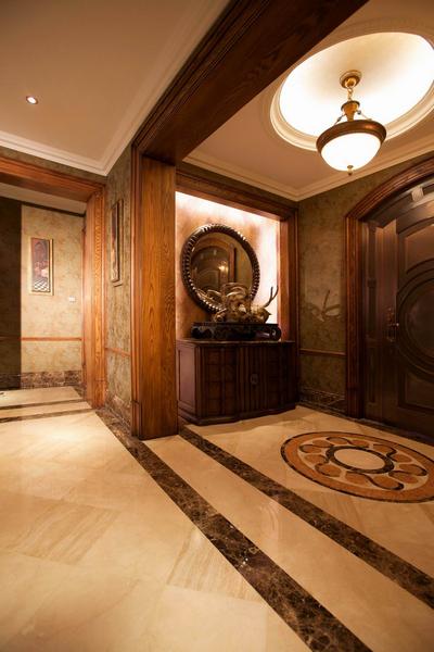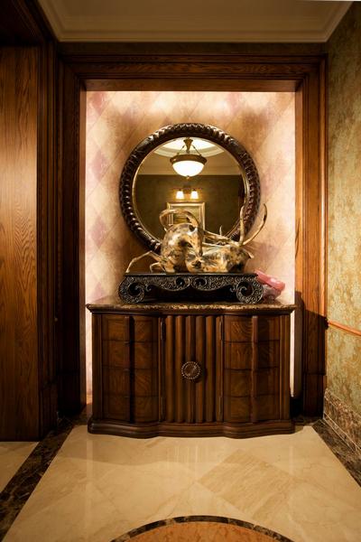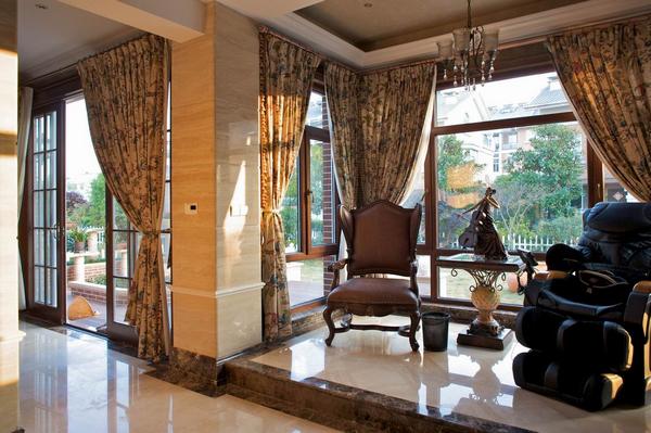 本案建筑面積300平方米,共兩層,是獨棟別墅,帶南北室外花園,是專為成功且品位優(yōu)雅的人士量身定做的。此案的空間定為美式風格。便捷、隨意、休閑時美式家居最為強調(diào)的,因此整個環(huán)境部做刻意賣弄性的無所謂的裝點,強調(diào)的是交通流線的合理,起居休閑的舒適與和諧,功能布置的實用與方便。為了提煉出整個空間層次與文化積淀,用材上考慮的都是仿舊仿古系列??v覽整個別墅,飾面板,窗簾布藝,墻紙起了不可忽視的作用,其自身獨特的花紋為這個以美式定義的空間增添了浪漫、個性、舒適、大氣的視覺美感。在家具陳列選擇上強調(diào)整體風格的統(tǒng)一、大氣、隨意、輕松。每個個體家具表現(xiàn)出來的氣質(zhì)同樣非常獨到,同時也非常配合地表現(xiàn)出懷舊與人文傳承的個性。