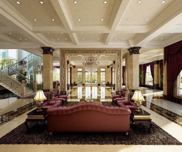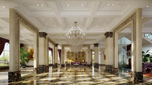 這是三星五金新辦公樓的設(shè)計方案。對于很多人而言,古典的魅力就在于其特有的貴族氣。客觀而言,如果沒有貴族氣,古典就失去了存在的理由。大廳地面采用深色天然石材做為材料,帶有雕刻的柱面底座與地面石材風(fēng)格一致。