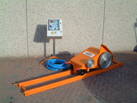 由一個(gè)10馬力電機(jī)驅(qū)動(dòng)切割系統(tǒng),并且直接與直徑390毫米的飛輪連接, 飛輪允許最大的線速度30米/秒,一個(gè)直徑200毫米的導(dǎo)向輪以便啟動(dòng),由一個(gè)電子裝置控制和定位機(jī)身臺(tái)車的向后移動(dòng)。配有串珠繩防護(hù)板,6米長(zhǎng)的導(dǎo)軌,由兩副3米長(zhǎng)的導(dǎo)軌組成(共20公斤),并配有快速鎖定裝置的管狀結(jié)構(gòu)??刂扑兄饕δ艿目刂票P的位置離工作區(qū)保持一段安全距離,并配有10米電纜。