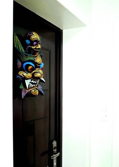 大門的背后,怪獸“夕”面目猙獰的守護(hù)著。純白楊木手工制造。是從一個(gè)云南的老藝人手上購得。我是個(gè)迷信的人,有它的守護(hù),心里能感覺踏實(shí)點(diǎn)。