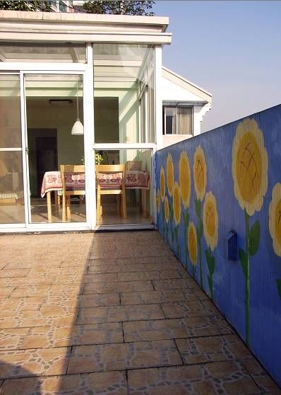 頭頂是藍(lán)色的天,身邊是金燦燦的向日葵。能在這個(gè)喧鬧的都市,擁有一小塊屬于自己的地盤。安靜的曬曬太陽,何等的奢侈。突然的,想到一句話:我的地盤,我作主。