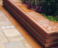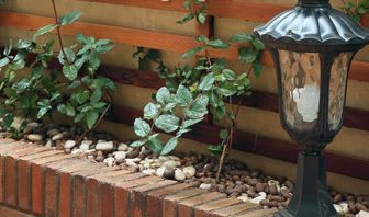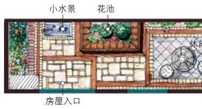 花園中部筑一花池,用木條裝飾在細(xì)節(jié)上做變化,突出它的觀賞性?;ǔ馗叨群统乇趯挾瓤刂圃谶m宜人休息的范圍內(nèi),這樣又可以提供一處落座空間,或擺上日常裝飾品,增加生活情調(diào)。