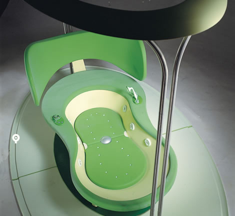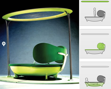 這個(gè)通體綠色的浴缸頂部有個(gè)很大的淋浴頭,幾乎翻蓋了整個(gè)浴缸的面積,就像在大雨中享受淋浴的感覺,每個(gè)孔的邊緣輕微反射光并且閃爍,就像夜空中的星星。它也提供了多種洗浴方式,采用輕便的軟材料,比堅(jiān)硬冷冰冰的陶瓷更舒服。不過這個(gè)浴缸目前還只是個(gè)概念設(shè)計(jì)。
