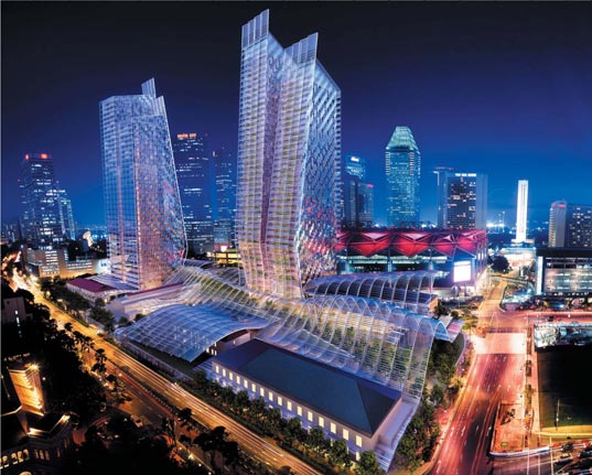 來自世界建筑Foster + Partners為新加坡設(shè)計(jì)的綠色建筑群。使得這個(gè)海島國家有一個(gè)綠色可持續(xù)的能源概念的建筑,該建筑占地150,000平方米,充分利用太陽能,海潮,降雨等天然資源,解決照明,用水,通風(fēng)等居住。