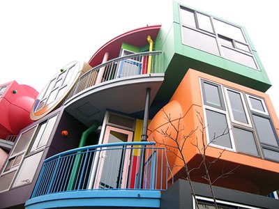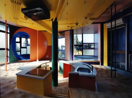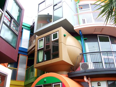 坐落在東京郊外三鷹市的一座老年公寓堪稱世上最花哨的住宅,由日本藝術(shù)家荒川修作和他的妻子、詩人瑪?shù)铝?middot;琴斯根據(jù)多種科學(xué)規(guī)律設(shè)計而成,其中包括神經(jīng)學(xué)及實驗現(xiàn)象。這座建筑外形奇特,色彩艷麗,建筑內(nèi)部也是波瀾起伏,色彩繽紛。設(shè)計者的座右銘是“建筑對抗死亡”。