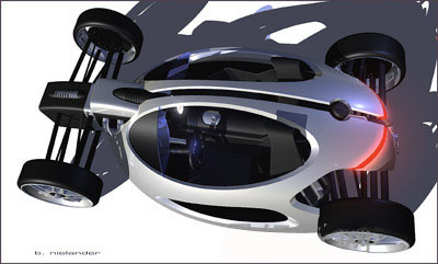 圖2:戴姆勒·克萊斯勒公司的太平洋設(shè)計(jì)中心面向道奇(Dodge)品牌設(shè)計(jì)的“Superbee”。碳纖維強(qiáng)化樹(shù)脂制造的底盤(pán),配備與賽車相同的懸架。預(yù)定配備排量為2.0L的V型8缸引擎,設(shè)想為在平時(shí)用于上下班,周末可開(kāi)著去山路上兜風(fēng)的生活用車。設(shè)計(jì)人員稱其為“乘坐感覺(jué)跟摩托車一樣的四輪車”。