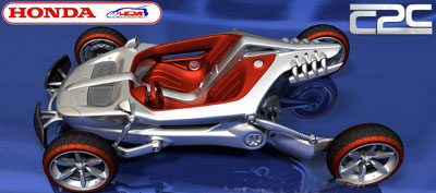 圖3:本田Research & Development公司設(shè)計(jì)的“C2C Concept”。C2C是Coast To Crest的省略語(yǔ),意為在海岸和山路均可行駛。除混合動(dòng)力裝置外,還設(shè)想配備利用電腦提前預(yù)測(cè)車輛運(yùn)動(dòng)趨勢(shì),減輕駕駛員負(fù)擔(dān)的轉(zhuǎn)向助力系統(tǒng)。車身很輕,使其功率重量比可與超級(jí)跑車(SuperCar)相媲美