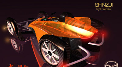 圖5:馬自達(dá)Research & Development公司設(shè)計(jì)的“SHINZUI”。在“Roadster”和“RX-7”等運(yùn)動(dòng)車的基礎(chǔ)上改進(jìn)而成,是一款別致的輕量型敞篷車。設(shè)想設(shè)計(jì)為采用轉(zhuǎn)子引擎(Rotary Engine)的單座席車。