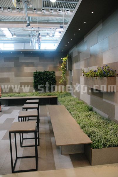 簡(jiǎn)單描述:不同石材穿插的石材工藝展現(xiàn)出藝術(shù)簡(jiǎn)潔美感,特殊的石材造型打造而成的極富創(chuàng)意的背景墻,生活化的創(chuàng)意縮短了與消費(fèi)者間的距離。溫馨中不失活潑。