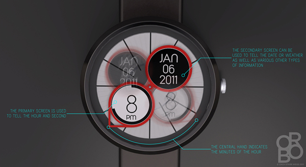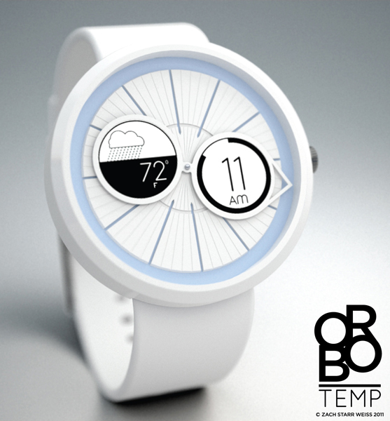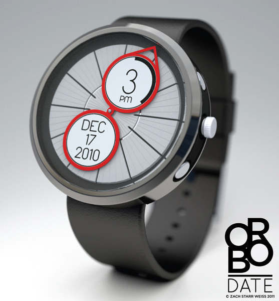 手表不一定只顯示時(shí)間,來(lái)自Zach Weiss設(shè)計(jì)的一款名為Orbo的手表,表盤(pán)上除了會(huì)顯示時(shí)間,還可以根據(jù)不同的型號(hào)顯示溫度、日期和其他附加信息。