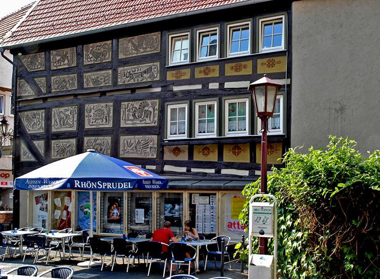 因為Alsfeld是著名的德國“童話之路”的一站,所以Alsfeld有些桁架結(jié)構(gòu)房屋上還有著格林童話故事里的圖案。