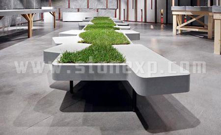 綠色的休息地,簡(jiǎn)潔的折線造型,線白的天然石材,純凈、時(shí)尚、大方,讓人們的心靈深淀。
