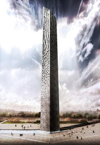 從紀(jì)念碑的側(cè)面看,這些圖案設(shè)計代表一種新思想火花的誕生。紀(jì)念碑立面上三角形洞規(guī)律是從無到有、從小到大、從稀到密。星星點點的火花最終通過量的積累到質(zhì)的突變——這即是革命,即是創(chuàng)新。這也是我的方案最終被采納的核心因素。”