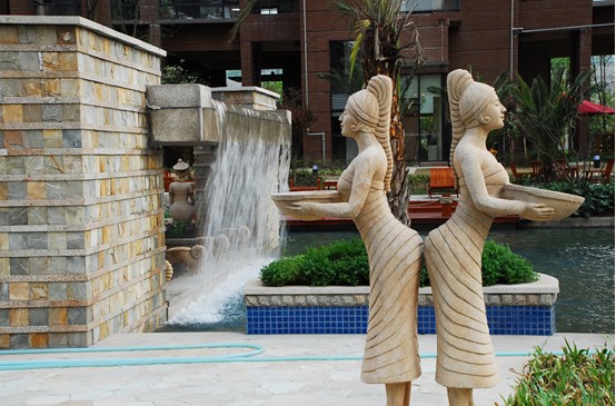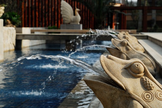 吐水獸、特色花缽、陶罐、景墻,各類異域風情的小品,經(jīng)過園林設計師的精心布局,有序分布于園林之間,與園林景觀完美融合,構成了一幅幅唯美的風情畫卷。